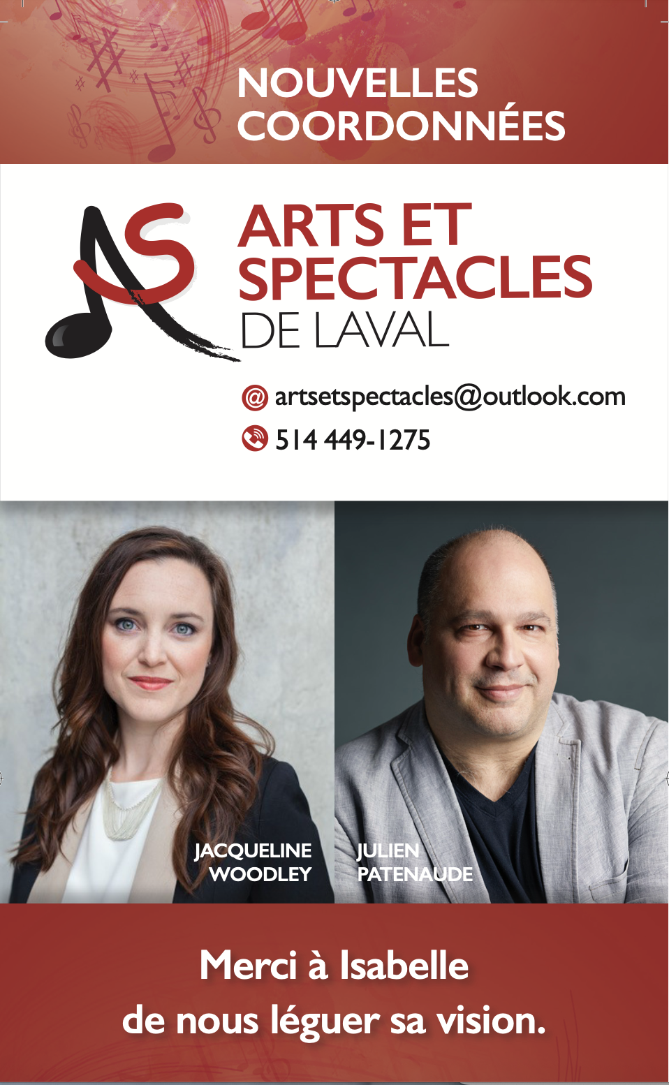 Depuis l’automne 2024, Julien Patenaude et Jacqueline Woodley donnent un nouveau souffle à l’organisme. Sous leur direction, Arts et spectacles de Laval propose désormais trois représentations pour chacun des cinq concerts de la série Déjeuners croissant-musique, ainsi que trois concerts dans la nouvelle série Café-concerts — pour un total de dix-huit événements par saison.